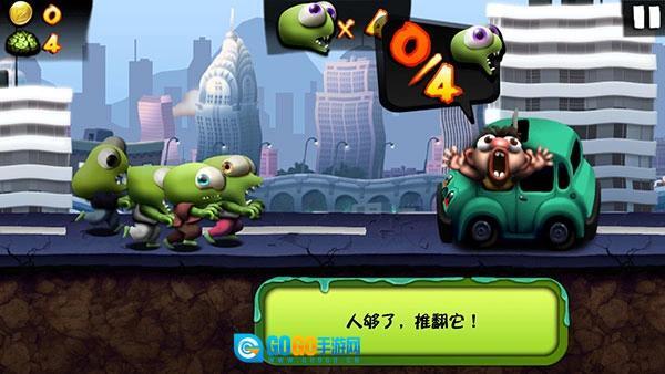 3、当僵尸数量少于车辆上方显示的数量时,就无法将其推翻,这时应当点击屏幕从车顶跳过去。