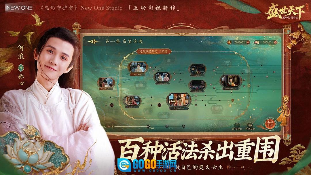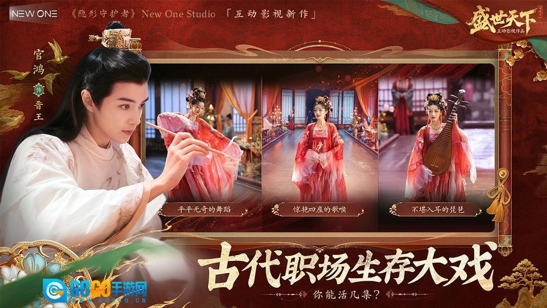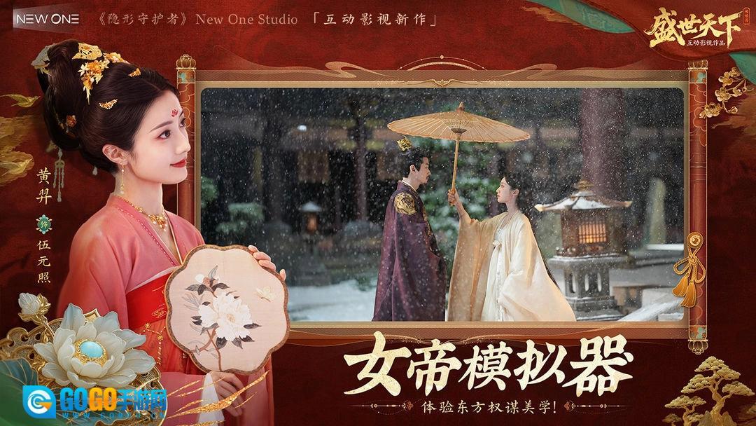 《盛世天下》是一部以盛唐宫廷为背景的沉浸式互动影视作品,它以中国历史上唯一的女皇帝武则天的传奇人生为创作蓝本,借助多线叙事和动态选择机制,引领玩家在虚构的“盛朝”王朝里,亲身感受波谲云诡的宫廷权谋斗争。该作品创新运用真人实拍技术来打造全场景的演绎,还特别邀请了官鸿、黄羿、姚弛、林小宅等新生代演员担任领衔主演。演员们细腻入微的表演,搭配精心设计的镜头语言,让剧情呈现出更具电影级的质感,使得玩家仿佛真正置身于真实的宫廷世界之中。