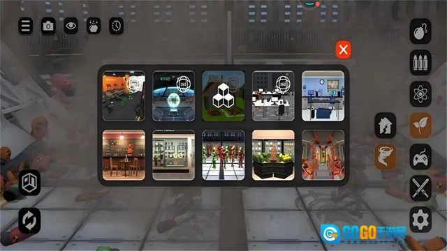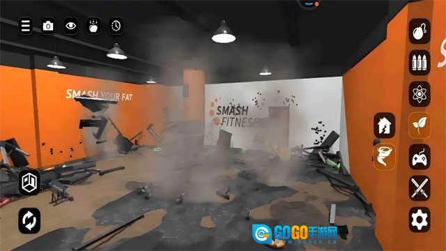 1、进入失控玩家模拟器游戏的首页后,我们能看到房间粉碎、、治理等选项