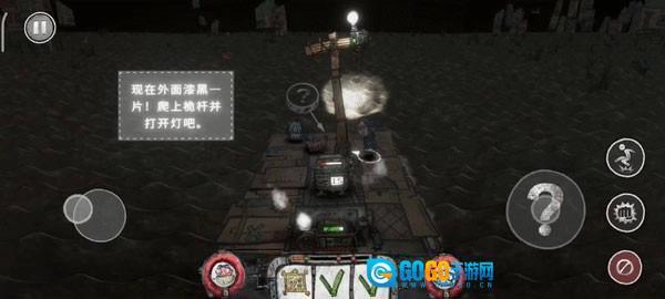 移动到桅杆旁,当集合功能键显示为梯子时点击爬上桅杆,就可以利用右摇杆控制探照灯横扫垃圾海啦。