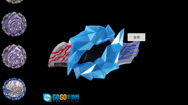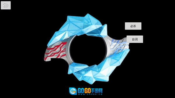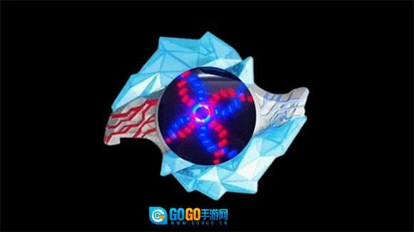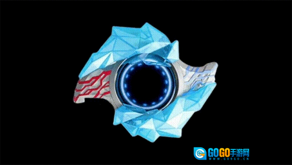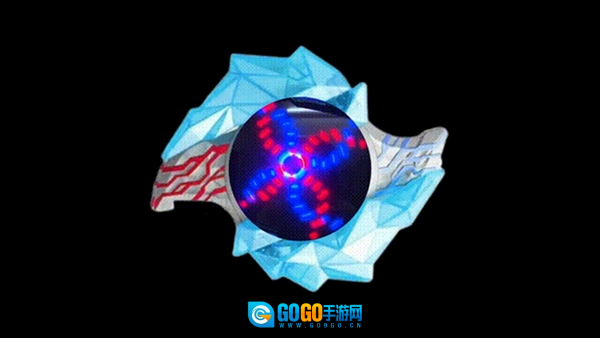 5、在变身的过程里,中间的水晶会展开并露出显示屏,屏幕上会出现红色与蓝色的圆圈旋转,而且不同的晶石所呈现的特效是各不相同的。