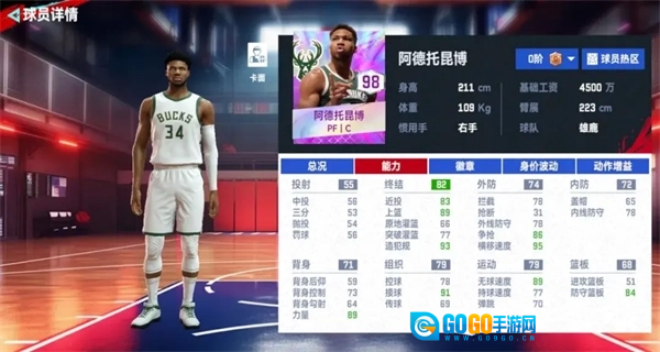 在阵容配置方面,我们可以优先围绕字母哥出色的终结能力来考量,同时追求内外线的平衡,因此选择采用3外2内的站位布局。
