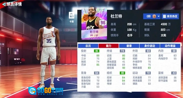 接下来要介绍的这位球星,堪称历史级别的得分手,也是联盟最强即战力之一。身高208cm的他,却具备后卫般细腻的技术,这使得他拥有当前版本最强的综合得分能力——他就是凯文·杜兰特。