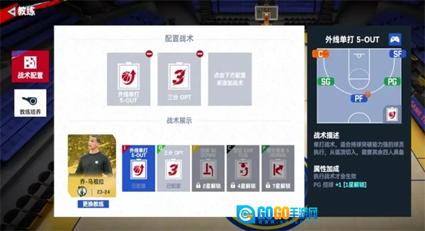 在王朝模式里,我们能够选用基德教练,他配备了I系的外线单打战术,当达到三星后还会解锁G系列的手递手战术,这与东契奇优秀的篮下终结能力以及顶尖的组织能力十分契合。