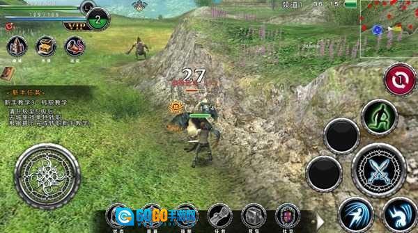 4、第一层塔内的怪物有草原幼龙、草原鸵鸟和兽人斥候,它们攻击力不高且移动迟缓,很适合新手熟悉操作。点击右侧的攻击键就能发起攻击,还可以用翻滚来躲避敌人的攻击。等角色到5级后,就可以回到主城去做首次转职任务了。在打怪的时候别忘了领取成就奖励,像首杀、首升这类的,都能让升级速度更快一些。