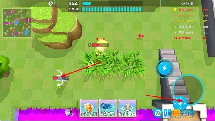 2、借助右下角的虚拟按键来操控角色进行射击,瞄准并对敌人发起攻击。
