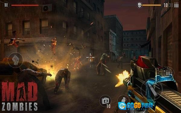 疯狂僵尸射击是一款超带感的手机僵尸射击游戏,游戏里我们要化身勇敢的战士,面对成群的僵尸,得用各类强力武器把它们全部消灭!像强大的僵尸猎人一样,为了守护自己的生存而战斗!这款游戏中的僵尸种类丰富,有行动缓慢但血量厚实的普通僵尸,也有速度快、攻击凶猛的狂暴僵尸,甚至还有能释放特殊能力的僵尸!当然,我们的武器也毫不逊色,各种威力强劲的重火力装备可以随意挑选,并且还能升级武器!