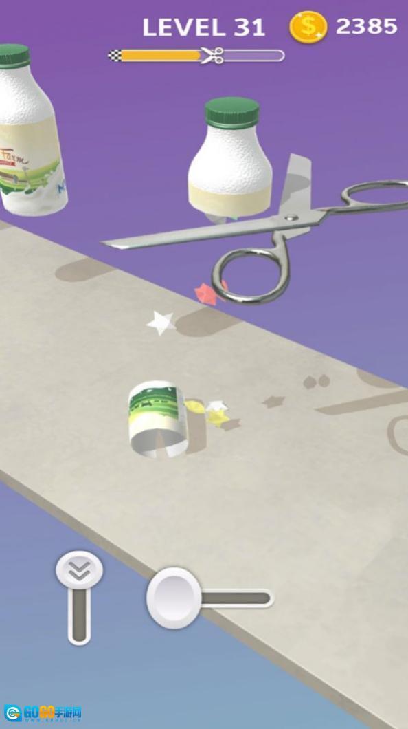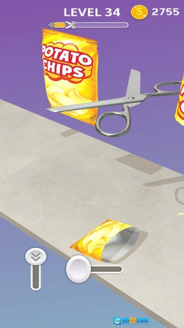 3、进入新的关卡后,会遇到各种各样的物品,需要灵活调整剪刀的切割角度与时机,结合物品自身的特性来完成切割操作,从而顺利闯过这一关卡。