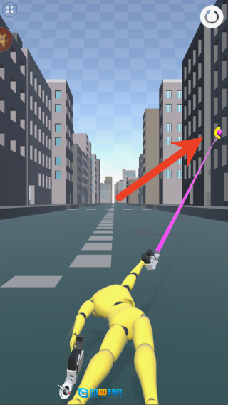 1、长按屏幕可生成摆荡绳索,借助绳索控制机器人向前摆动,松开手指即可断开绳索并调整落地位置。