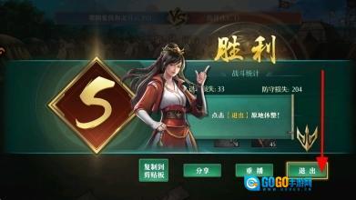 4、战斗结束后会呈现战斗结果,若获胜,可查看战斗统计以了解损失等信息,随后点击退出,即可结束本次战斗。