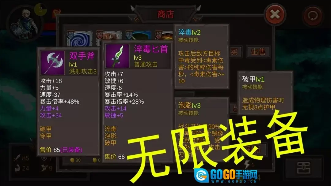 武器带两把匕首,有淬毒即可,有吸血更佳