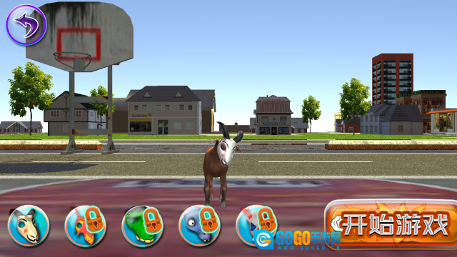 1、点击继续按钮进入城市场景后,屏幕左下角会出现方向操控键,右下角则有跳跃按钮。首先通过方向键操控山羊在街道上移动,熟悉场景布局,同时尝试点击跳跃按钮,让山羊越过路边的障碍物。