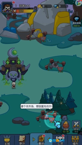5、建造一座伐木场,建成后别忘了安排骷髅兵去采集资源。