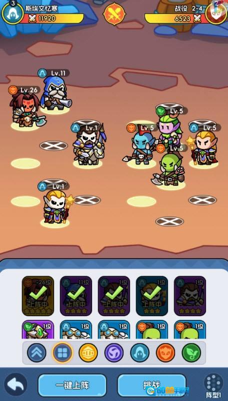1、组件属于自己的阵容,不断的去开始闯关。