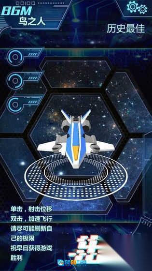 1. 于战机界面,轻点【出击】,驾驭蓝白战机驶入太空赛道,熟练掌握射击(单击)、加速(双击)的操作方式。