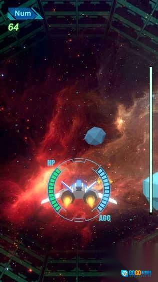 3、若遭遇大型蓝色陨石构成的障碍,需及时调整飞行方向,凭借战机的机动性,选择从侧面或者下方进行绕行,进而持续推进关卡进程。