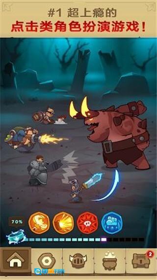 游戏里几乎涵盖了大部分RPG内容,把打怪环节改成了放置战斗,不过你也能让英雄释放大招。