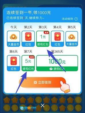 2、新人完成签到操作,每次均可获得丰厚奖励,这些奖励支持累计,当累计金额达到指定数额后,即可申请提现并到账。