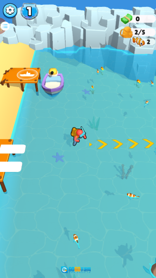 2、每成功捕获一种新类型的鱼都能得到额外奖励,要跟着箭头快速前进。