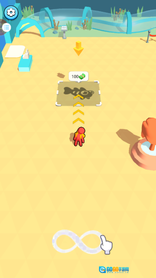 进入游戏后,操控角色按照箭头的指引移动,在移动过程中收集沿途散落的金钱。
