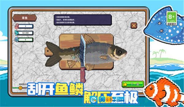 2、借助工具处理钓到的鱼,刮净鱼鳞以完成餐厅订单,赚取的报酬可用于升级装备和解锁新区域。