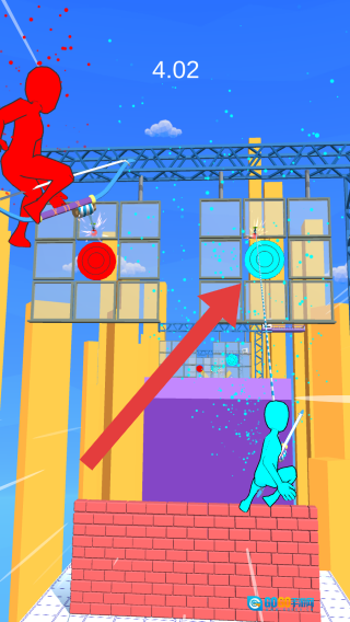 2、界面上会显示倒计时,我们在蓝色方阵营,得依据靶子的位置来射击,稍不留意就很容易掉下去。