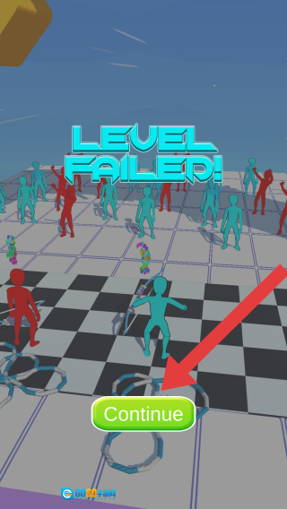 3、呈现两位玩家都抵达终点,其他玩家欢呼喝彩的画面,需点击“Continue”按钮才能进入下一关继续游玩。