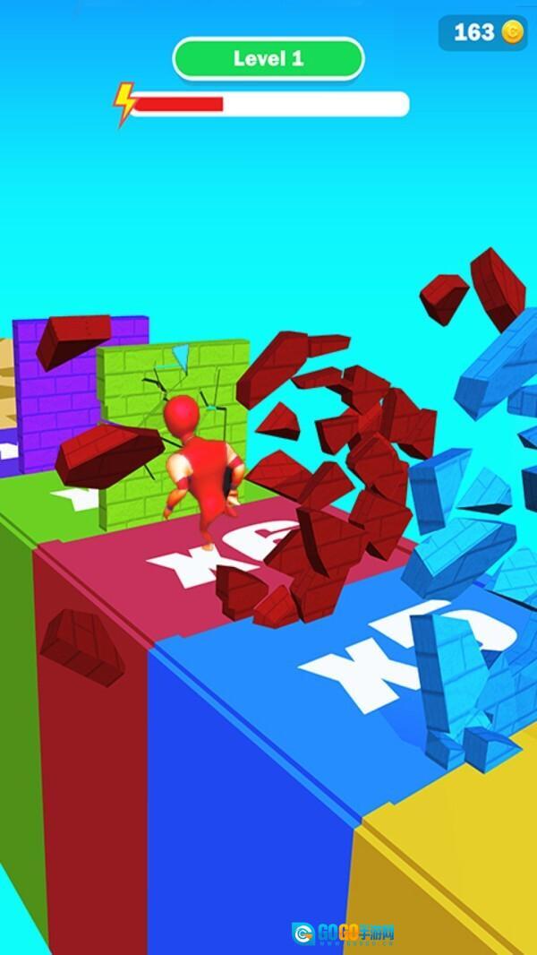 击碎路上所有同色的障碍物,以此积蓄能量并触发高速冲刺,将沿途的一切都撞得粉碎!