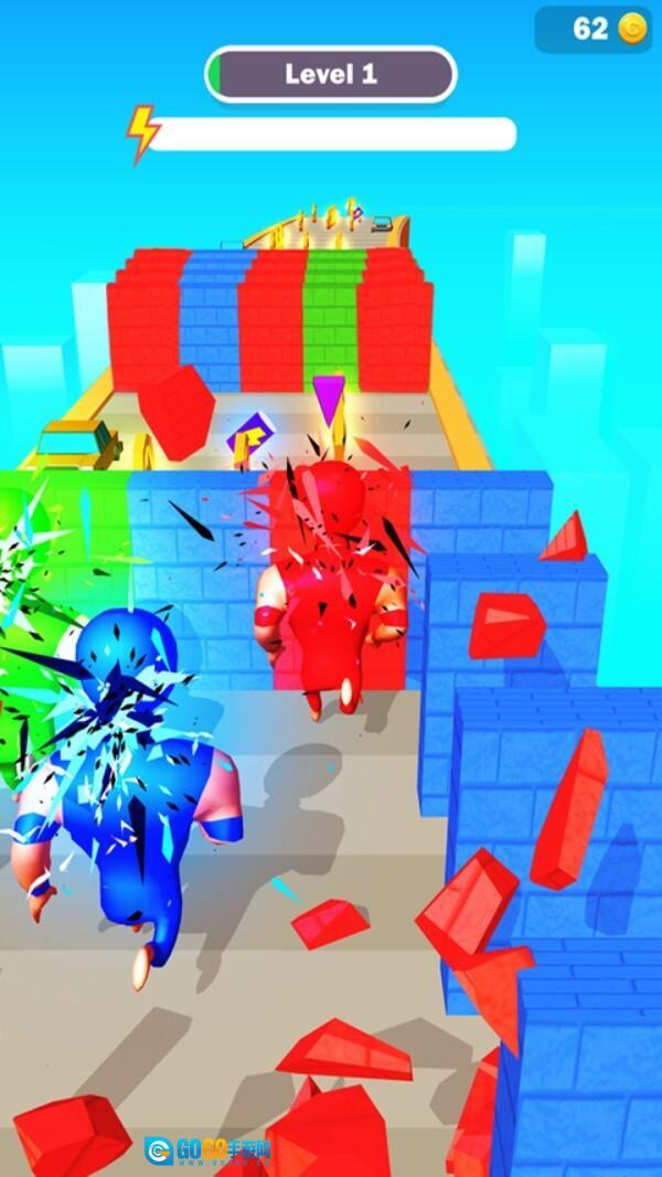 粉碎冲冲冲游戏是一款趣味十足的竞速跑酷游戏!它采用精致的卡通3D画面,玩家将操控小人全力冲刺奔跑。面对障碍无需畏惧,直接粉碎即可!不过要留意,部分障碍是无法被粉碎的,所以我们得持续提升自身等级,并合理运用游戏内的各类道具。
