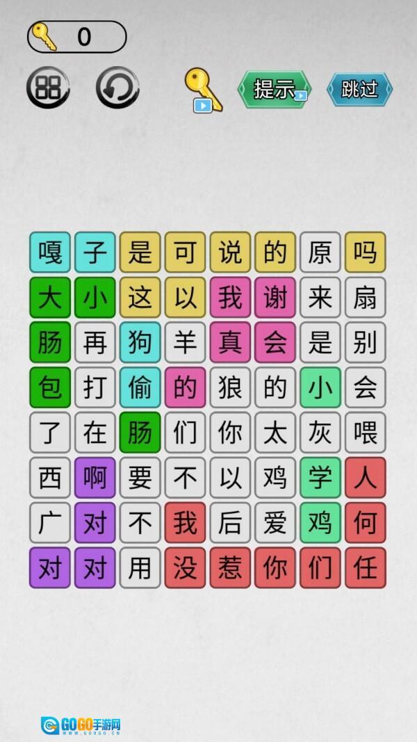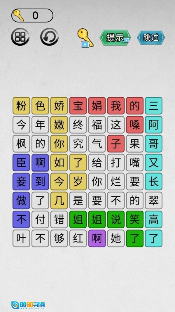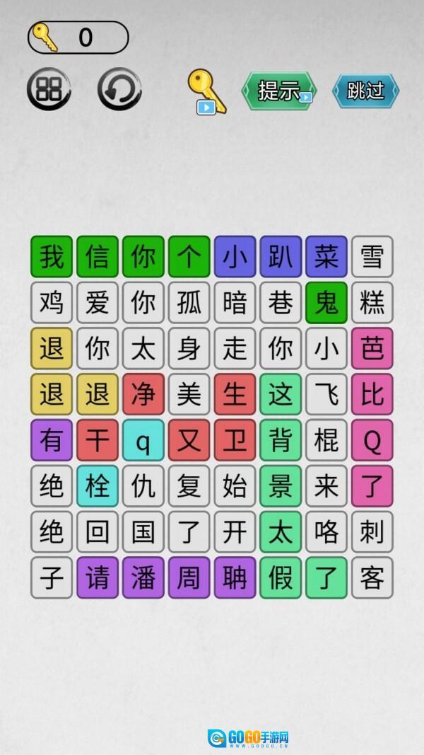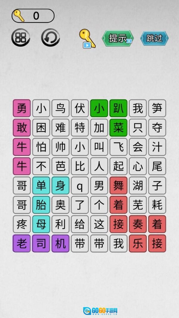 3.持续将各个汉字串联起来,组合成正确的成语或词组,以此检验玩家对网络梗的熟悉度。