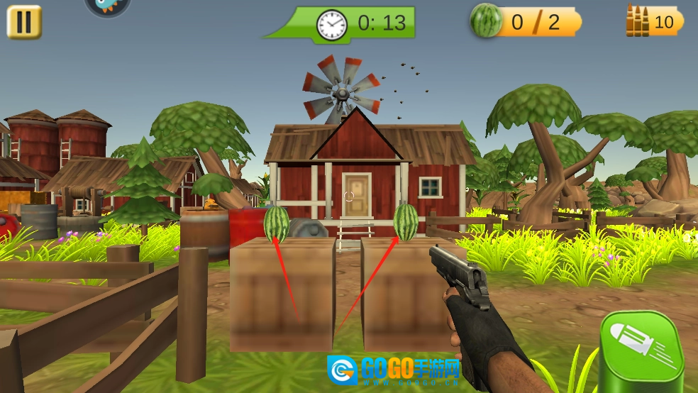 2、瞄准屏幕中的水果目标进行射击。