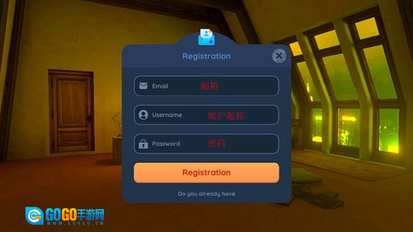 如果是第一次玩,还没有账号,选择“registration”注册,然后输入邮箱,设定自己的游戏昵称和密码,即可创建新账号!