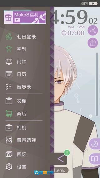 3、点击游戏左下角,在这里进行登录签到、闹钟、日历、衣棚以及相机等多种操作。