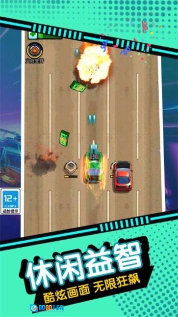 2、玩家可以为赛车装备武器,击败赛道上的敌人。