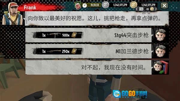 2、找到Frank之后,他会提供一些武器以及弹药给你;