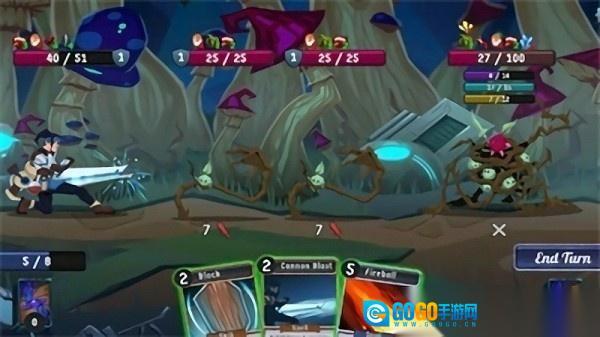 1、开局先拿三张基础卡牌凑合用,打掉几个小怪就能解锁花样玩法的卡组。