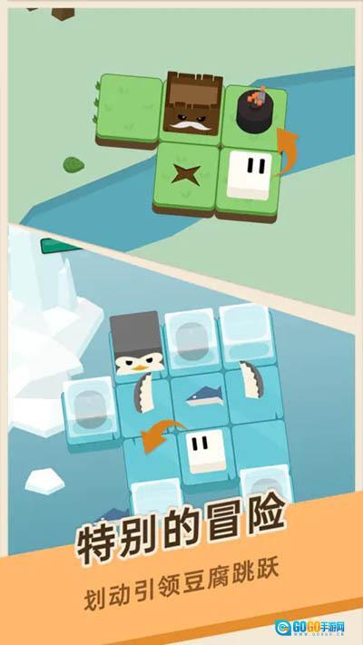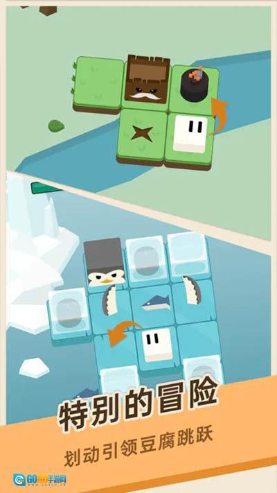 滑动控制:玩家仅需在屏幕上滑动,就能操控豆腐块在格子之间跳跃。