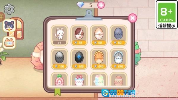 2.在商城界面中可以购买不同的猫咪蛋,通过消耗钻石解锁各种可爱猫咪,满足玩家收集的欲望并增加更多趣味玩法。