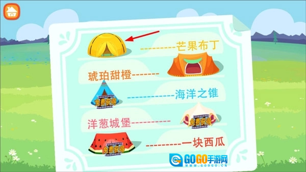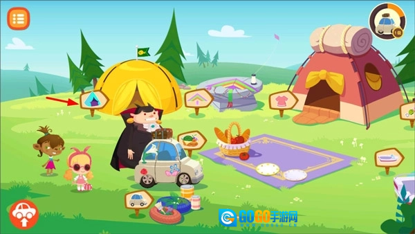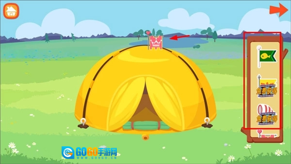 1、打开糖糖郊游记,进入游戏后,点击右侧的帐篷。