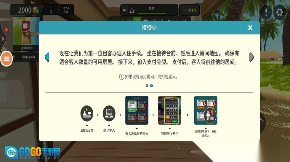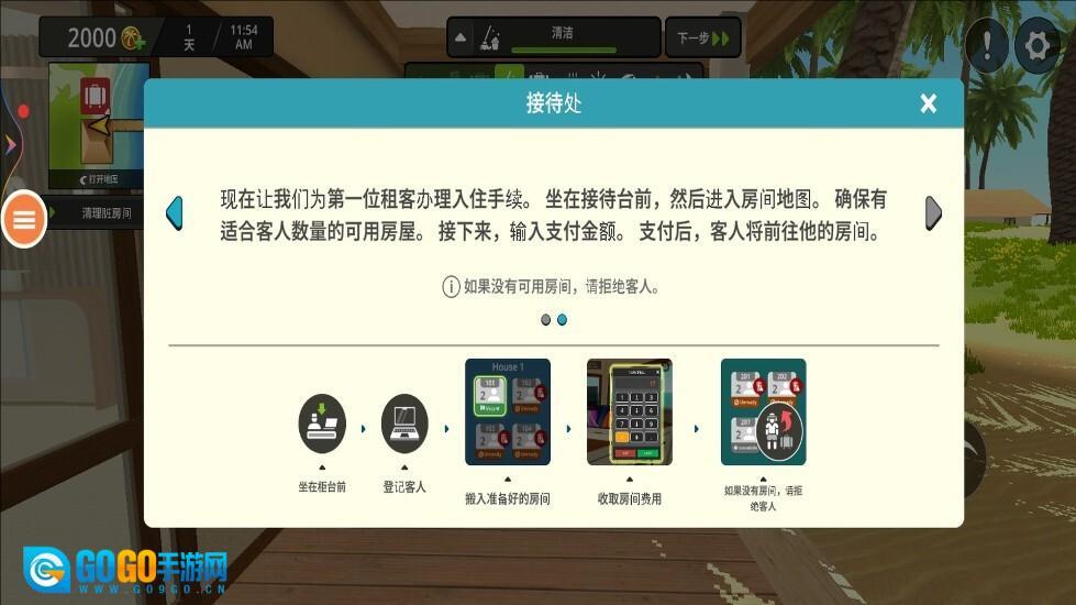 1、借助柜台登记、脏房清理等具体操作细节,强化用户的代入体验。