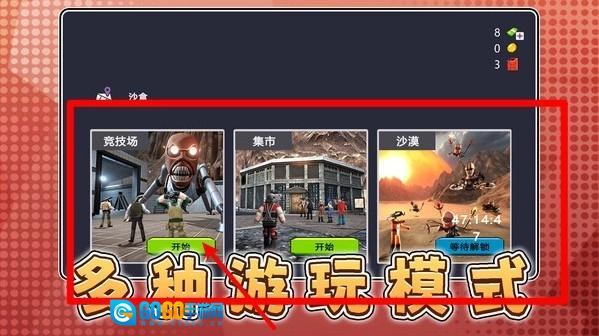 1.选择不同模式进入关卡,竞技场与集市玩法各具特色,玩家可依喜好选择挑战或收集资源的路线。