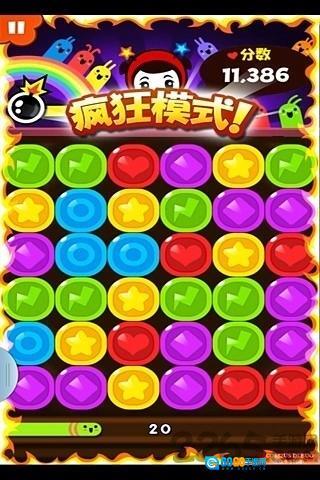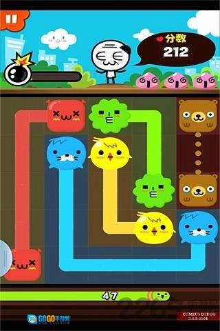 3. 侄子玩的“砰砰砰”游戏,规则是点击3个或3个以上相同的图案就行。这游戏看起来和对对碰挺像的,不用移动图案位置,直接点击就可以操作。