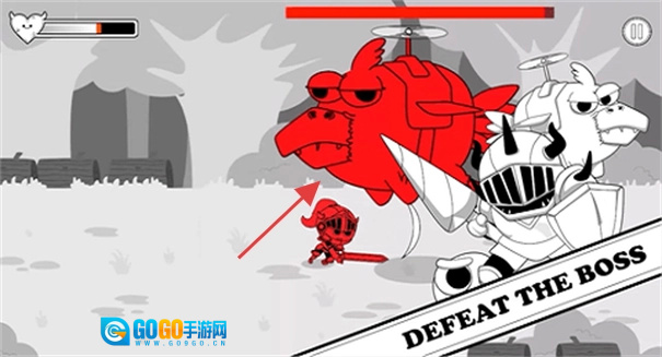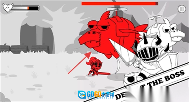 1、进入游戏场景后,操控角色直接面对Boss(例如红色巨龙之类的敌人),借助战斗操作全力战胜Boss,以此推动关卡的进度。