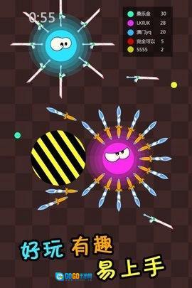 》是一款充满趣味的对战休闲游戏。游戏里有着各式各样的刀剑武器,玩家在游戏中比拼的就是胆大心细,看谁的飞刀技术更加高超。通过攻击、防御和走位来展现你的技术,飞刀无眼,可得小心了!