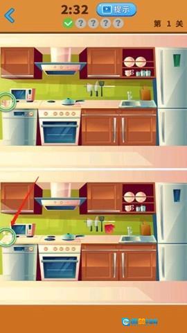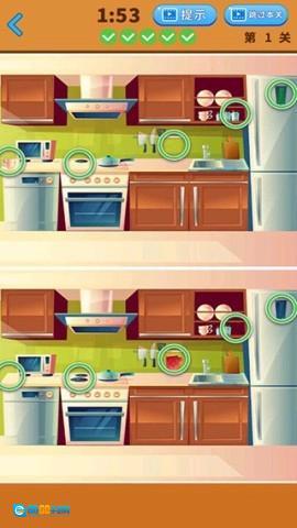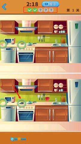 用手指点击左右两幅图之间的不同之处,每幅图一般有五个不同点。