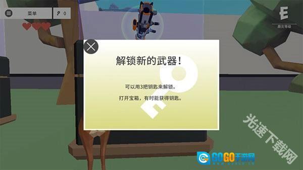 3、当靠近地图上的物体时,会弹出相关提示,比如若想获取该武器,就需要用钥匙来解锁它。