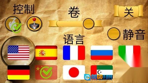 2、点击“设置”选项,玩家可以选择本国语言,也能调整声音的开关状态。