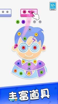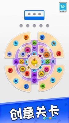 2.在这个充满彩色螺丝的世界里,你得依据屏幕上方彩色盒子的颜色,点击与之对应的钉子,把它们拆卸下来并收纳到盒子里。