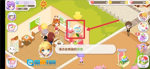 1、首先进入,点击烤箱的泡泡开始制作蛋糕。