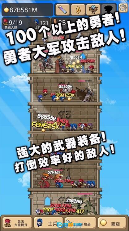 勇者之塔是一款结合闯关与升级玩法的角色扮演游戏,你可以在闯关过程中持续提升士兵等级、强化战斗能力、优化装备属性,一路突破重重关卡,打敌人一个措手不及。让游戏乐趣更加酣畅淋漓!喜欢闯关、升级与战斗的小伙伴们,快来加入吧!